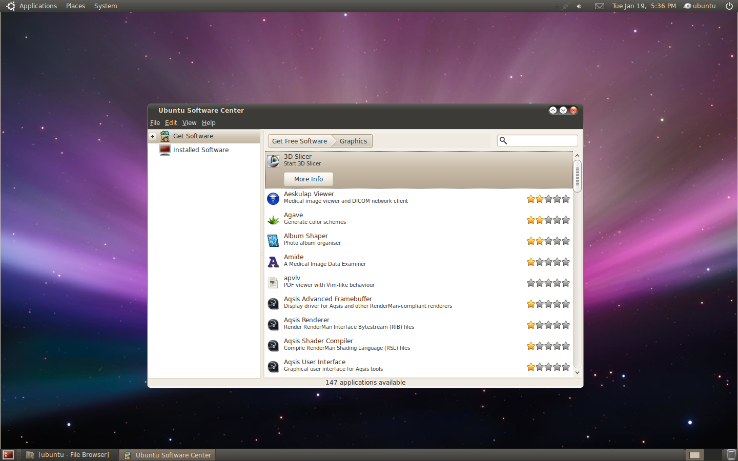 with Ambiance theme, featuring the Mac space desktop background