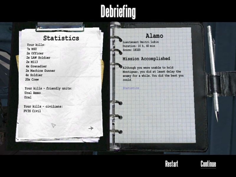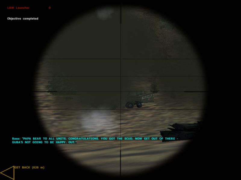 | Death is no stranger in Operation Flashpoint. Camera zooms out Matrix-style as I take a hit from a tank in one of the hardest missions in the game - Alamo. |